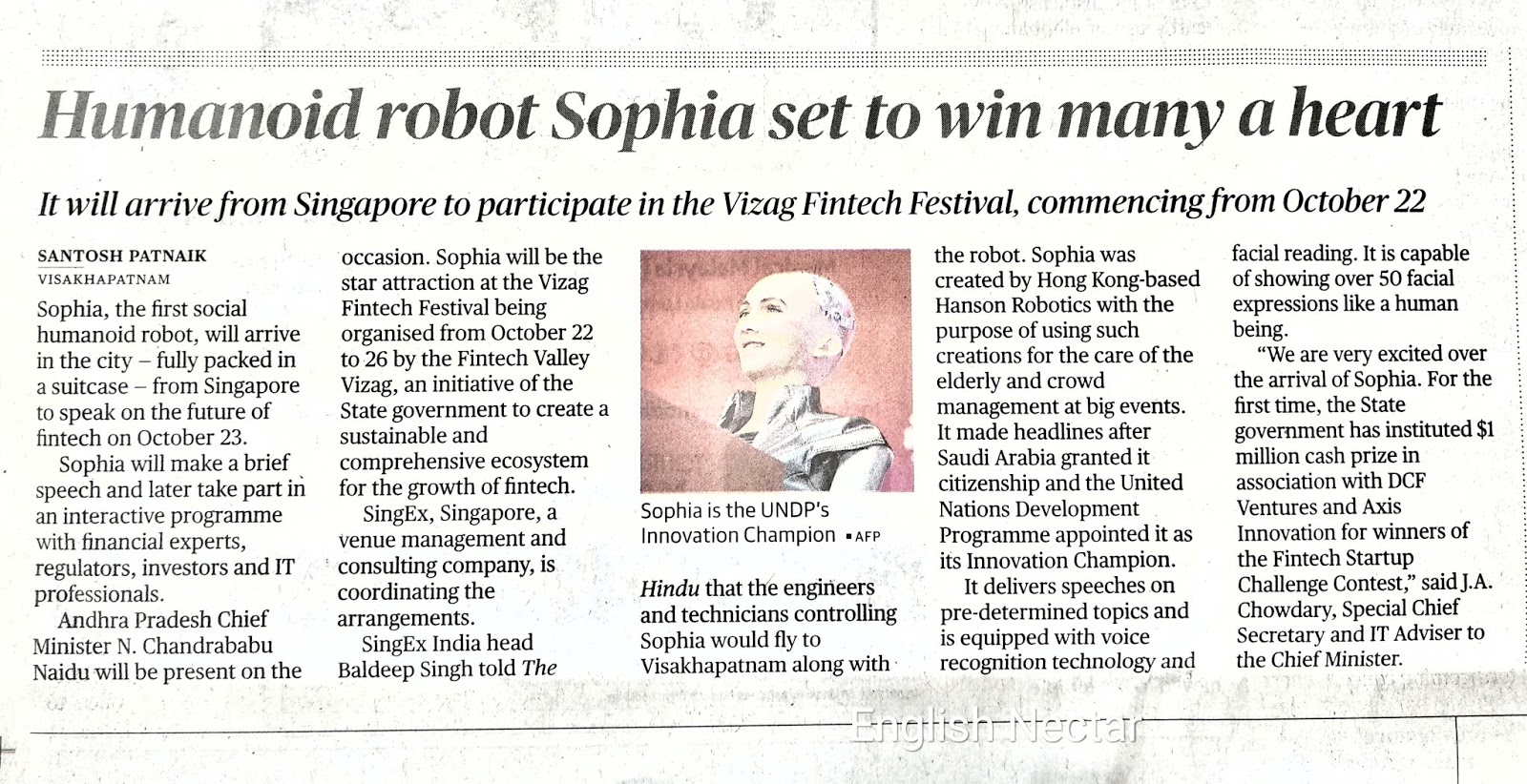 English Nectar A Piece Of Information On Sophia Robot The Innovation Champion