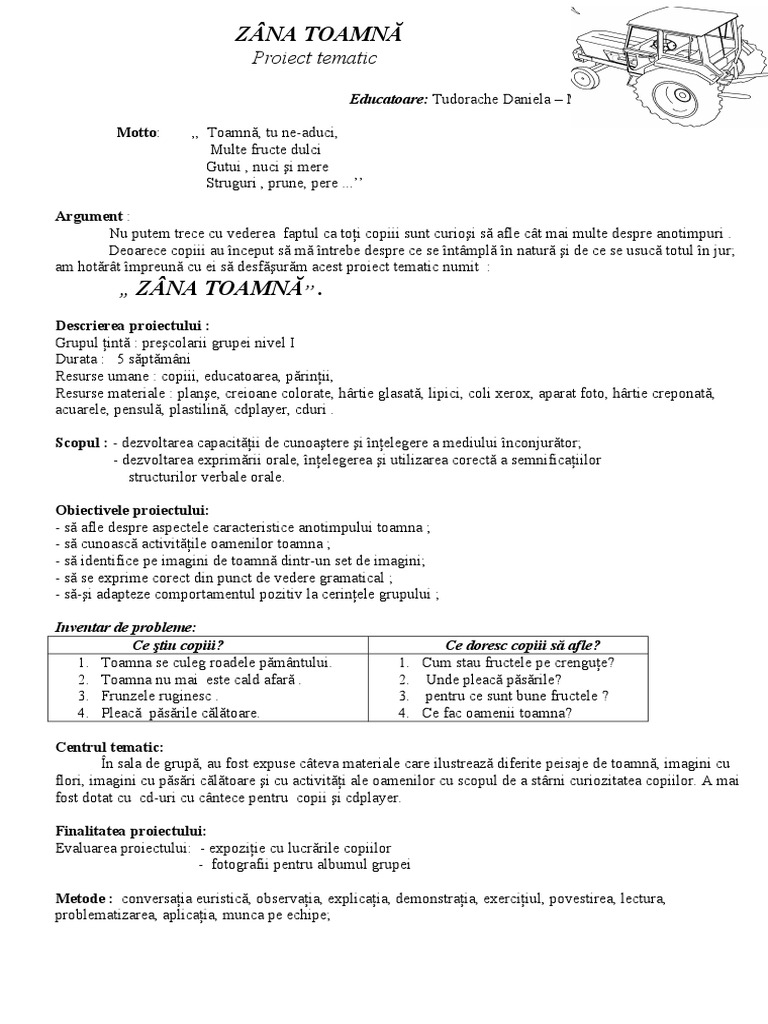 Proiect Tematic Zana Toamna