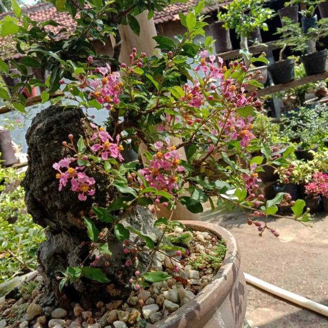 Bonsai Pohon Tanaman Hias Sakura Mirten Micro Mikro Bunga Pink Natural Konstruksi Dan Taman 794662032