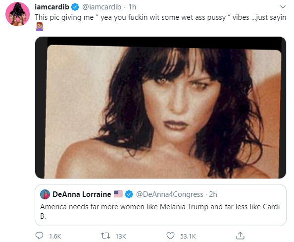 Balleralert On Twitter Cardi B Responds To Politician Deanna Lorraine After She Dogs Cardi And Uplifts Melania Trump