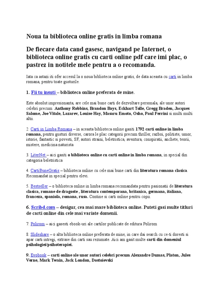 Noua Ta Biblioteca Online Gratis In Limba Romana