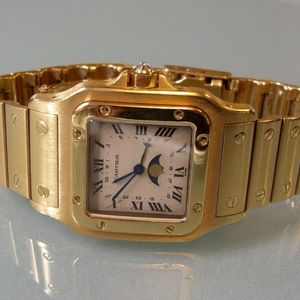 Cartier Santos 18k Yellow Gold Half Moon Phase Watch 1776626322